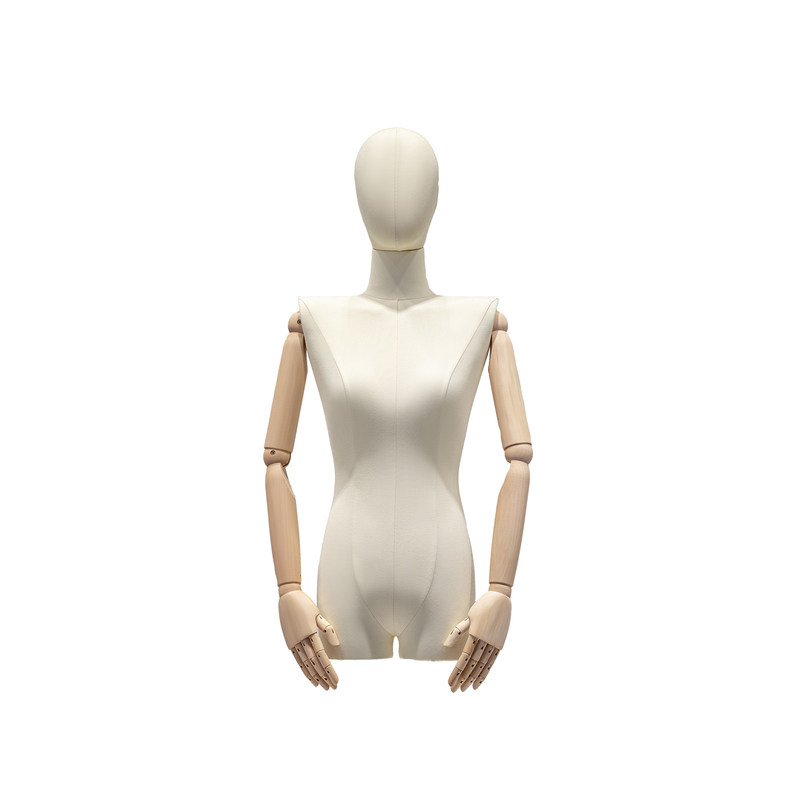 El blanco y el negro son colores clásicos intemporales que siempre han sido muy apreciados en el campo de la moda.El blanco presenta un ambiente puro, fresco y elegante, adecuado para mostrar diseños y productos claros y brillantes.El negro presenta un encanto misterioso, elegante y llamativo, adecuado para mostrar estilos y productos de alta gama y de moda.No importa el color que elijas, este modelo femenino de medio cuerpo puede traer un sentido de la moda clásica a tu exhibición de moda.Este modelo femenino de medio cuerpo es la opción ideal para marcas de moda, diseñadores y minoristas.puede mostrar su creatividad y productos de moda.Al elegir diferentes colores y combinaciones, puede presentar una amplia gama de estilos de moda e inspiración.Haga de este clásico modelo femenino de medio cuerpo envuelto en lino blanco y negro un punto culminante de su exhibición de moda, trayendo un banquete de moda elegante y de moda a la audiencia.Ganará más elogios y atención para su marca, y proporcionará a los clientes una experiencia de compra única y agradable.Ya sea presentado de forma independiente o en pareja con otros modelos, este modelo femenino de medio cuerpo será la elección perfecta para su exhibición de moda.