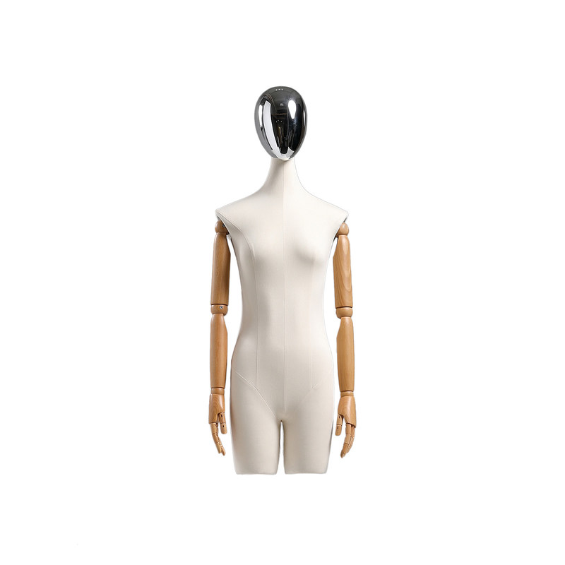 Este modelo de medio cuerpo fue diseñado para ser exhibido en la ventana y tiene una apariencia hermosa que puede atraer la atención de los clientes.Utilizamos tecnología de galvanoplastia para presentar una textura metálica brillante en la superficie del modelo, dándole una sensación noble y de moda.La cabeza de este modelo es móvil, y se puede ajustar el ángulo y la dirección de la cabeza según sea necesario para mostrar diferentes formas y posturas.Esta flexibilidad le permite diseñar escaparates basados en diferentes productos o temas, aportando frescura y atractivo a su tienda.